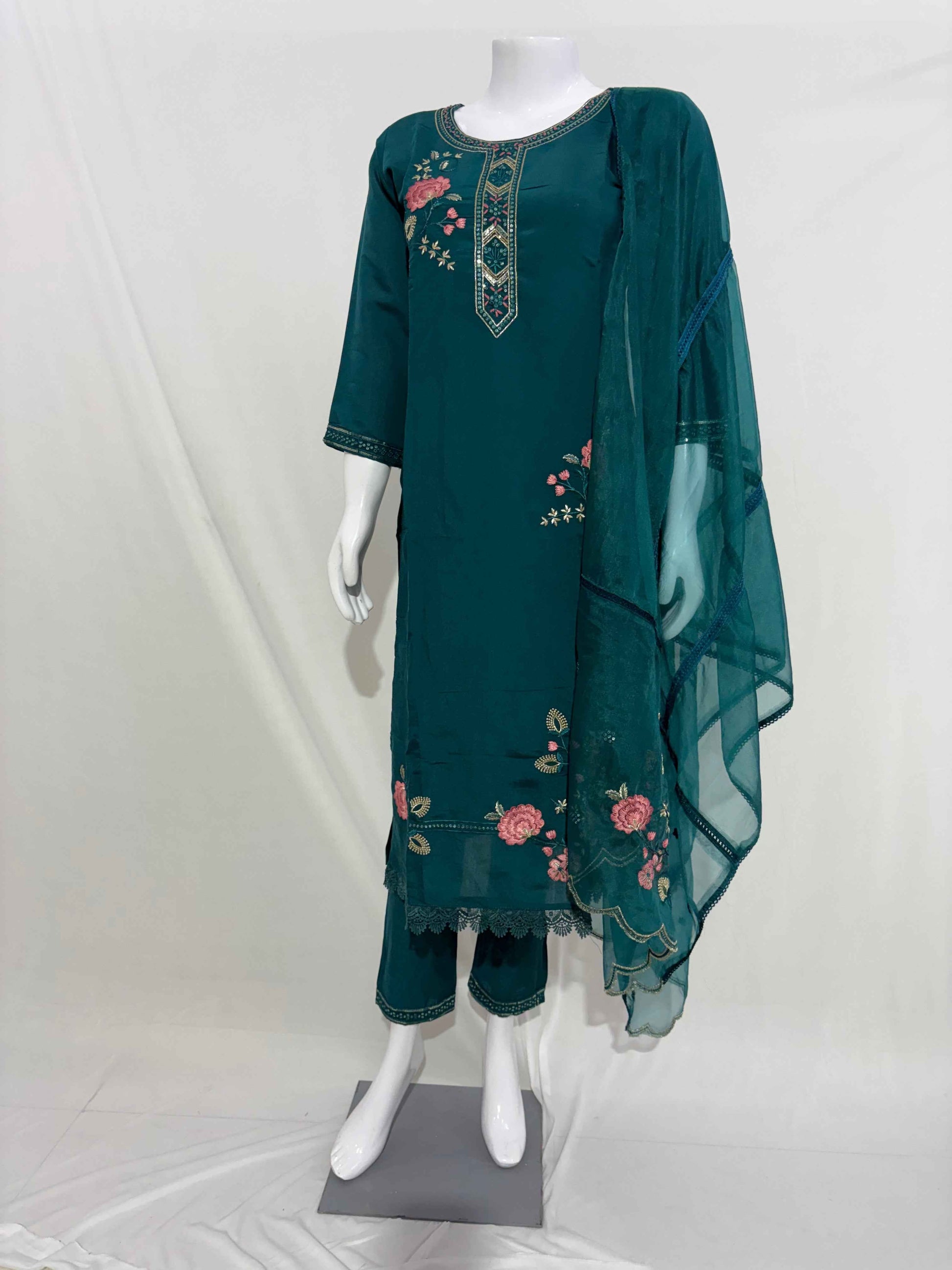 Experience elegance with this Festive Wear Green Kurta Set crafted from soft and comfortable Silk fabric. Designed with a straight cut and handmade detailing, it offers both style and ease for special occasions. Affordable yet sophisticated, this kurta set is perfect for women seeking festive charm without compromising comfort.