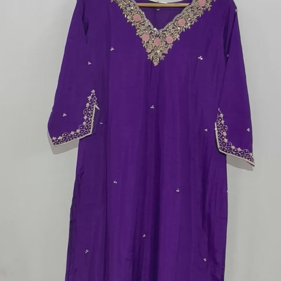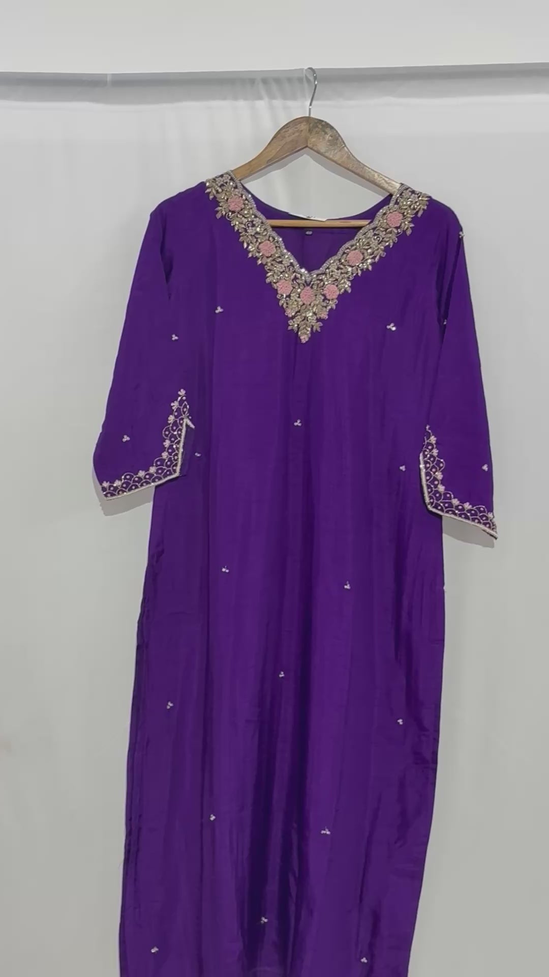 Experience elegance with this Festive Wear Purple Kurta Set crafted from soft and comfortable dola silk fabric. Designed with a straight cut and handmade detailing, it offers both style and ease for special occasions. Affordable yet sophisticated, this kurta set is perfect for women seeking festive charm without compromising comfort.