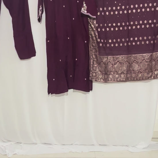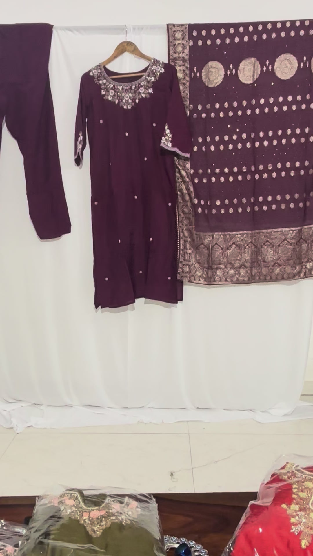 Experience elegance with this Festive Wear Wine Kurta Set crafted from soft and comfortable dola silk fabric. Designed with a straight cut and handmade detailing, it offers both style and ease for special occasions. Affordable yet sophisticated, this kurta set is perfect for women seeking festive charm without compromising comfort.